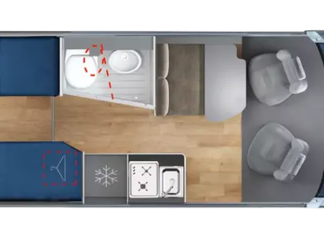 CAMPER CON CAMAS SEPARADAS PARA DORMIR A PIERNA ANCHA.