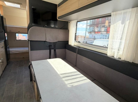 Autocaravana perfilada pensada para quienes buscan el equilibrio perfecto entre comodidad y practicidad, sin las limitaciones de la vida. Cuenta con literas traseras fijas, ideales para familias o para disponer de camas siempre montadas, además de salón delantero amplio y luminoso con asientos giratorios.
