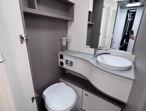 Separación real entre ducha y aseo, permitiendo el uso simultáneo por dos personas. Una distribución poco habitual fuera de modelos integrales de gama media-alta.Gran capacidad de almacenamiento